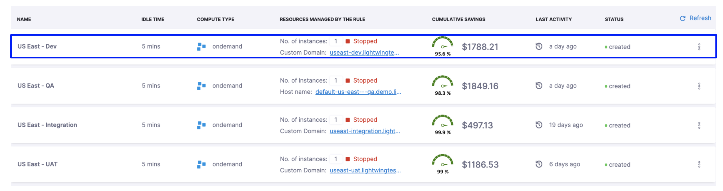 AutoStopping Rules make sure that your non-production resources run only when used, and never when idle. It also allows you to run your workloads on fully orchestrated spot instances without any worry of spot interruptions.