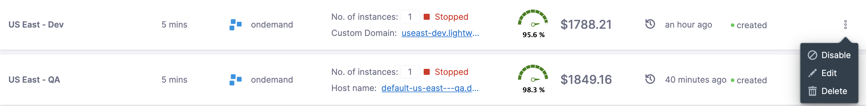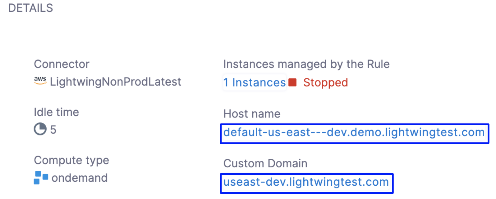 1. In AutoStopping Rules, in Summary of Rules, click on the Custom Domain or Hostname of the selected instance.