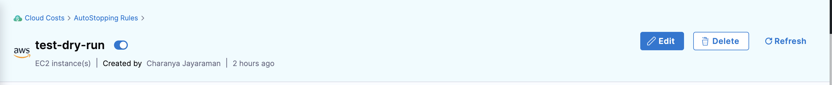 You can view the details of the AutoStopping rule that you have created.