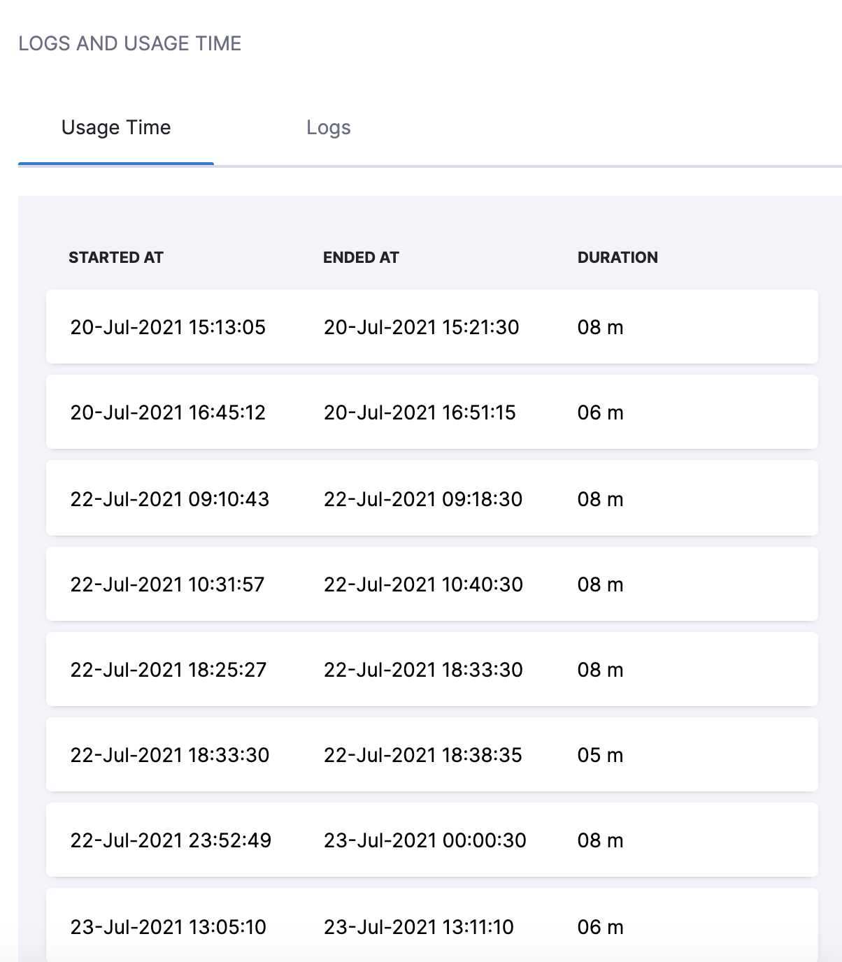 1. In Logs and Usage Time, view usage details and logs for the selected rule.