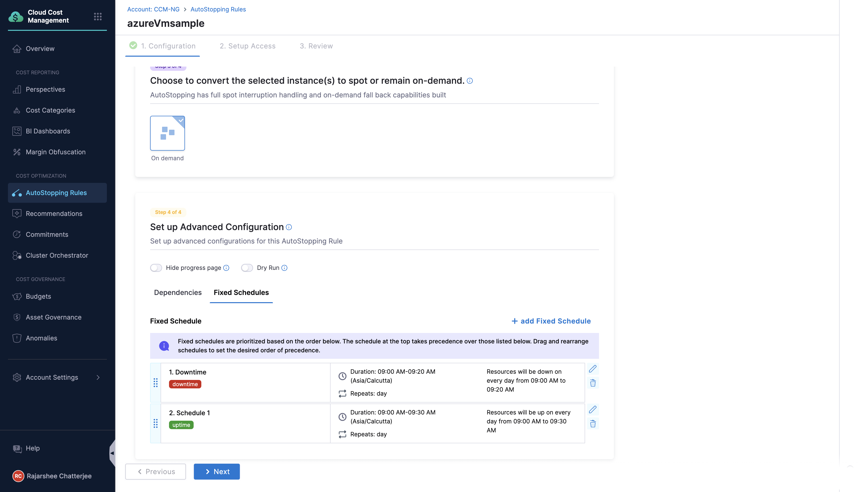 Harness AutoStopping Rules now support overlapping schedules, offering enhanced flexibility for resource management. Users can define multiple fixed schedules within a single AutoStopping rule, even if they overlap. The resulting schedule is determined based on a customizable priority order, which can be adjusted using a drag-and-drop interface.