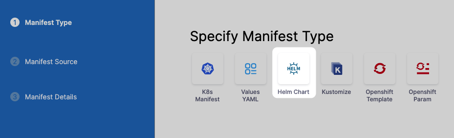4. In Specify Manifest Type, select Helm Chart, and click Continue.