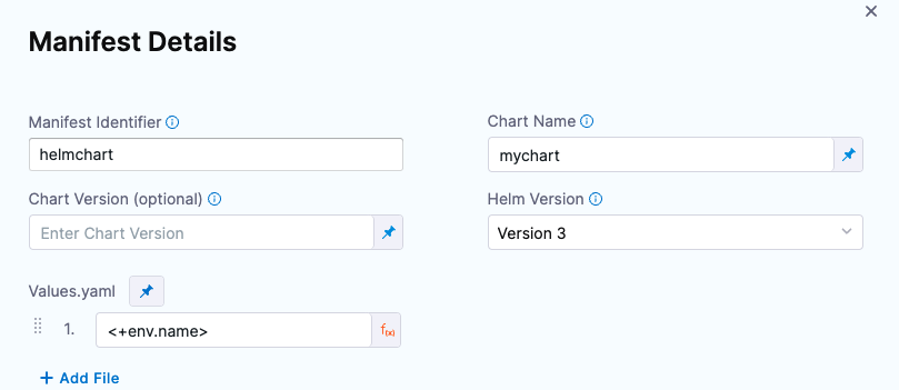 • You can define expressions for the Chart Name and Base Path settings, and, at runtime, Harness will resolve those expressions and let you pick a version.