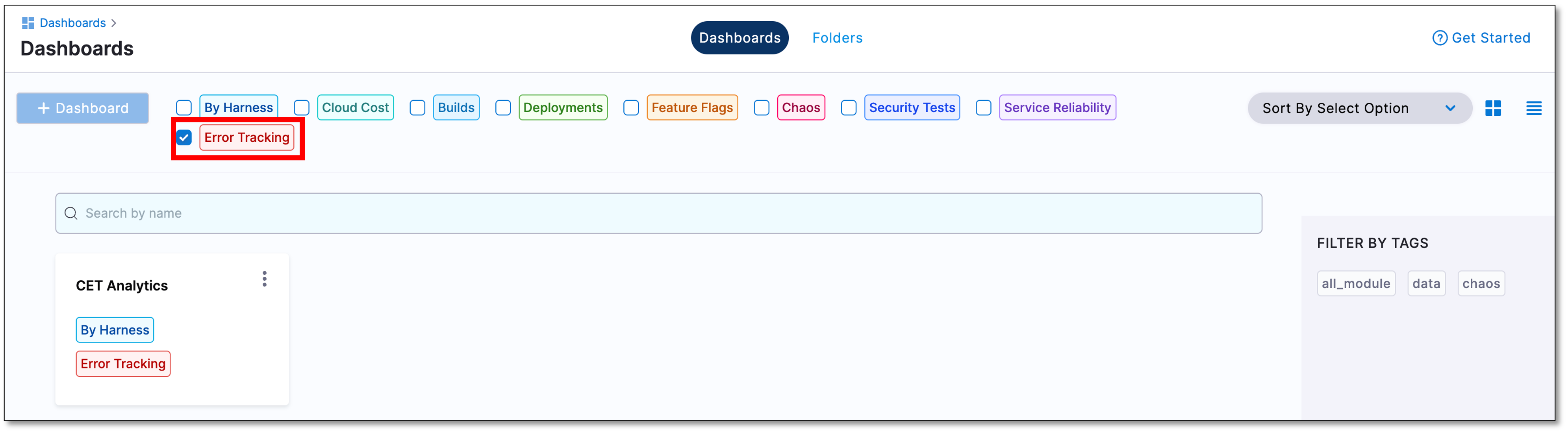 Harness Continuous Error Tracking (CET) features a pre-configured dashboard that offer consolidated insights into events across deployments and accounts, improving error tracking and decision-making. This dashboard encompasses data from all projects and environments within your organization. Additionally, you have the flexibility to create and customize your own CET dashboards.