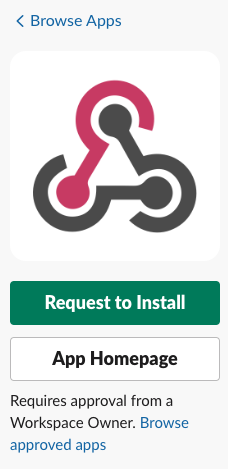 2a. If you're not an Owner, click the Request to Install button and ask your Slack Workspace Owner to follow the rest of the steps in this doc.