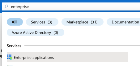 From the MS Azure console, enter Enterprise in the top search box and click Enterprise Applications.