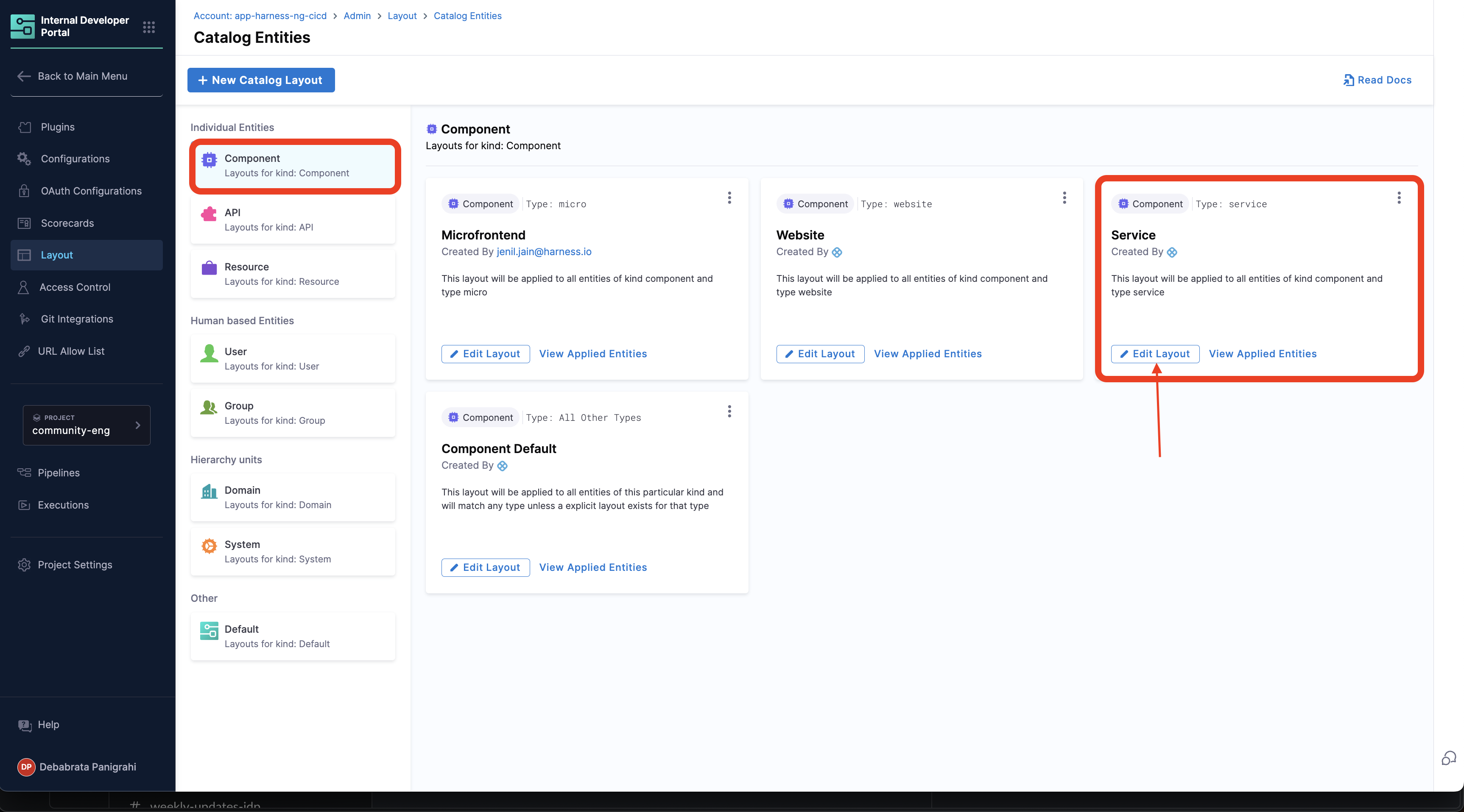1. Now Select Edit Layout for component Service and add the following under Overview card.