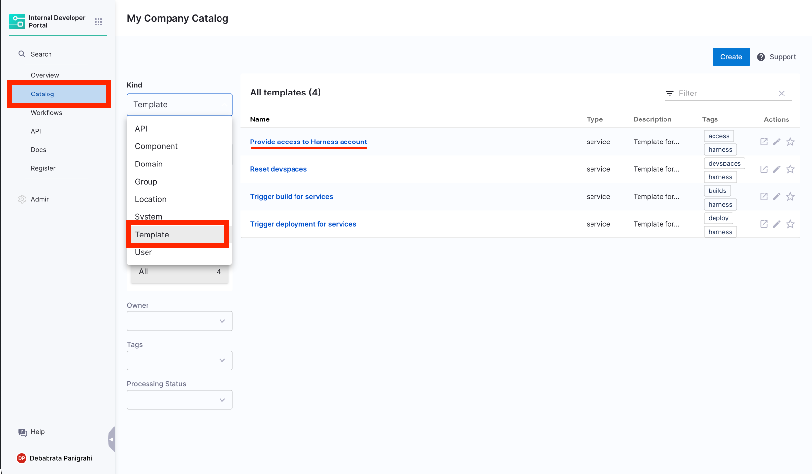 Now navigate to the Create page in IDP. You will see the newly created Workflow appear. Try it out!