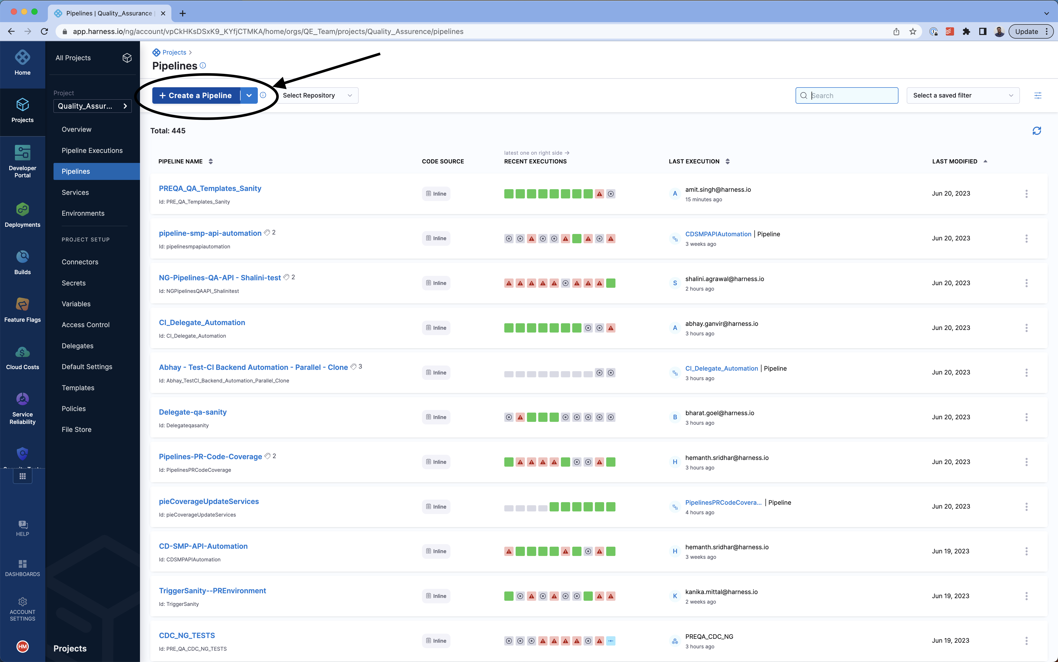 1. In the sidebar of the Harness application, select Projects, and then select a project.
