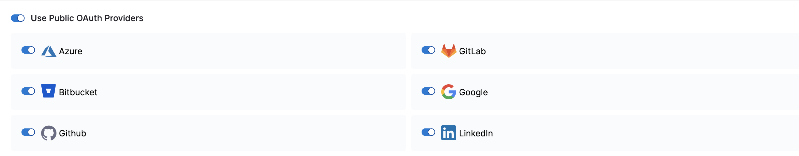 7. Enable each public OAuth 2.0 provider you want to use for SSO.