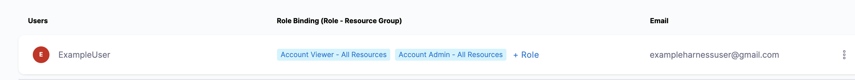 ExampleUser is registered in Harness with the email address exampleharnessUser@gmail.com: