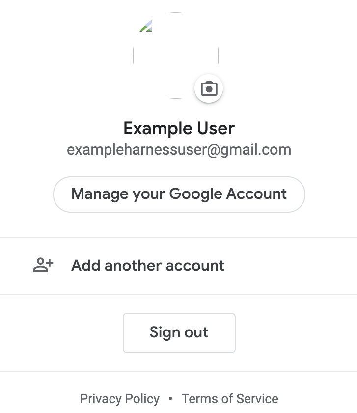 The email address exampleharnessUser@gmail.com is also registered with Google: