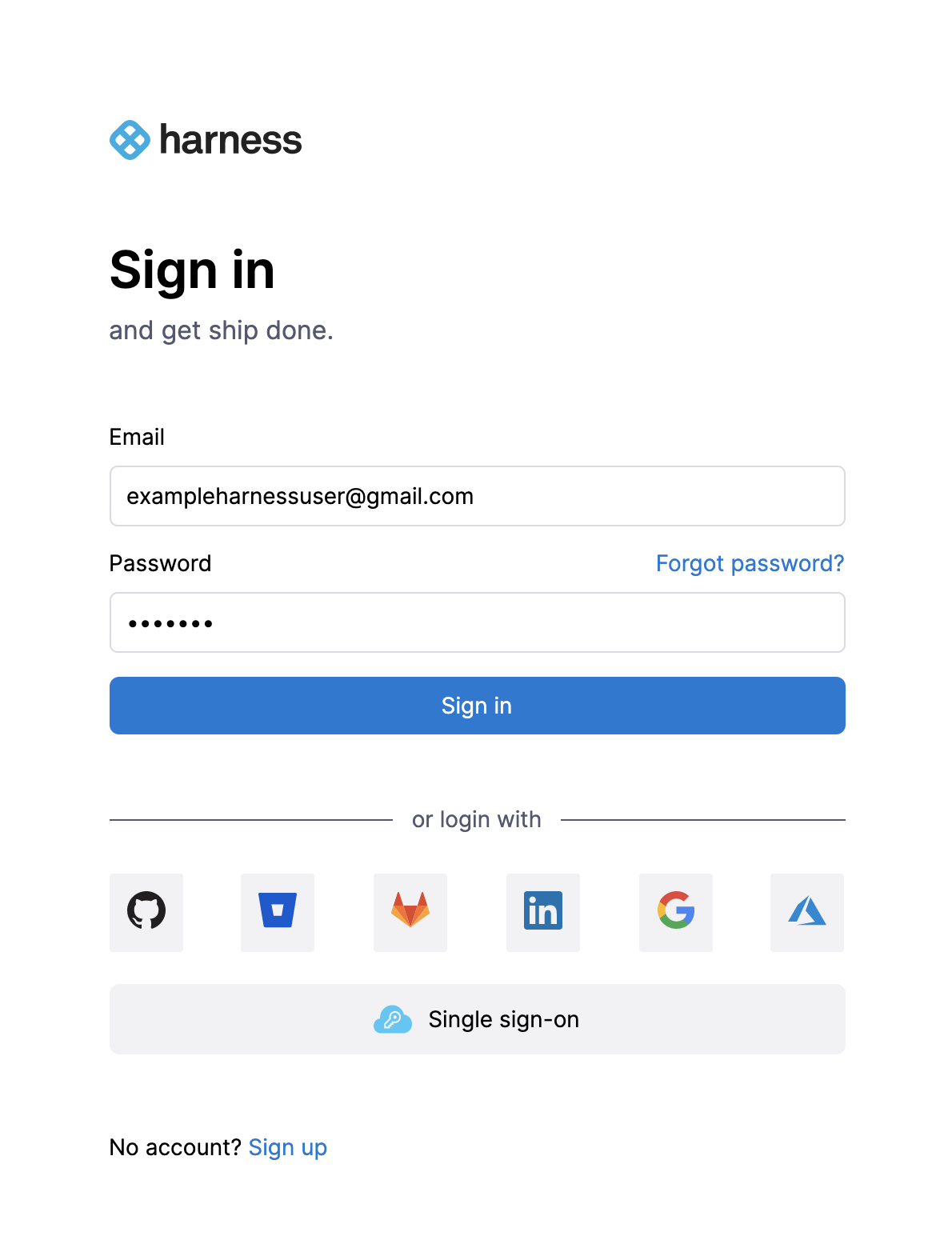 The first time you log into Harness using OAuth 2.0 SSO, you will be redirected to the OAuth 2.0 provider. Enter the same email address you used for Harness, along with the OAuth 2.0 provider-specific password. Next, you are redirected back to Harness and automatically logged in.