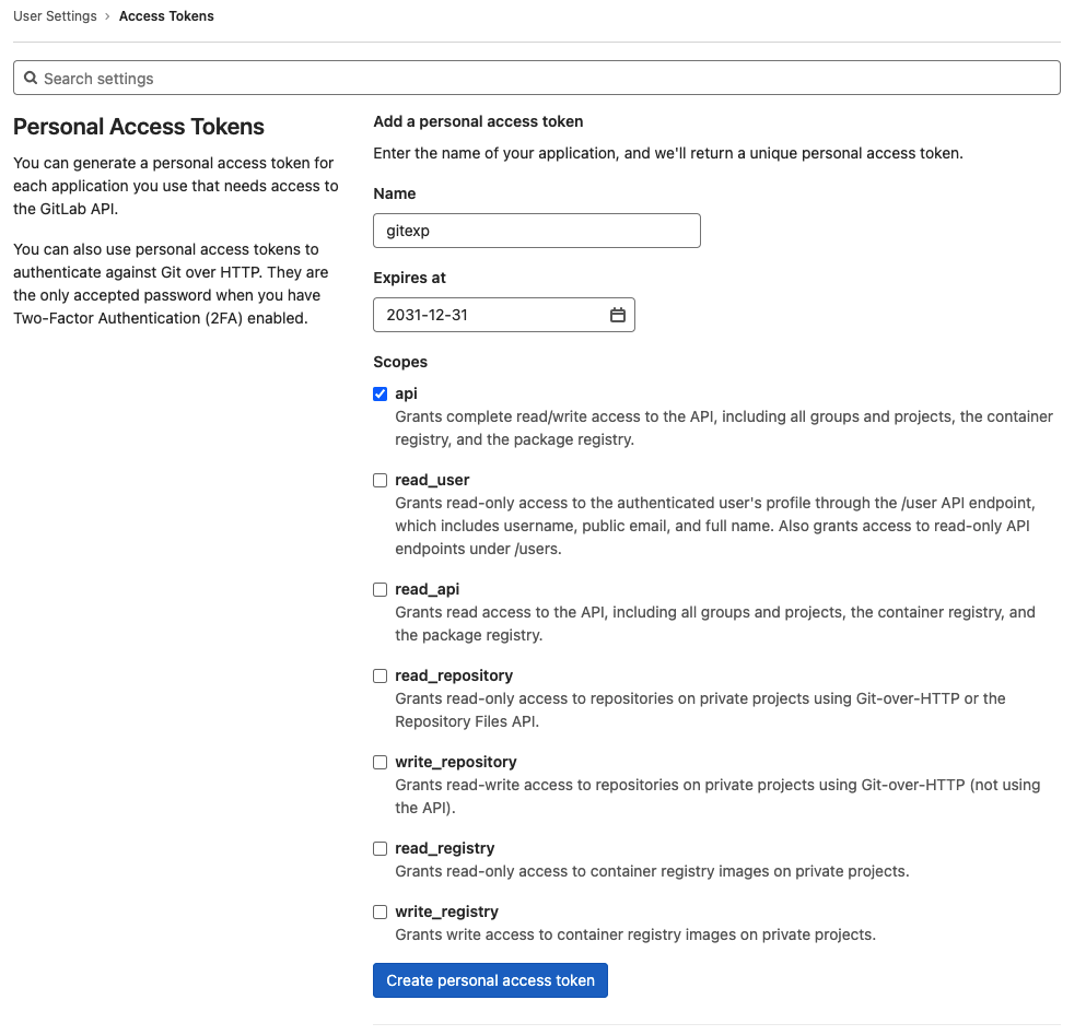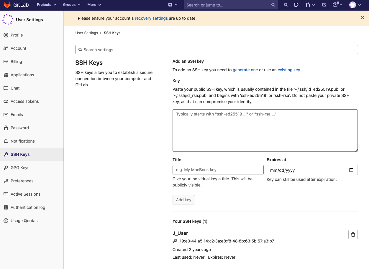 • SSH Key. This is the private key. The corresponding public key is added to your GitLab account settings.