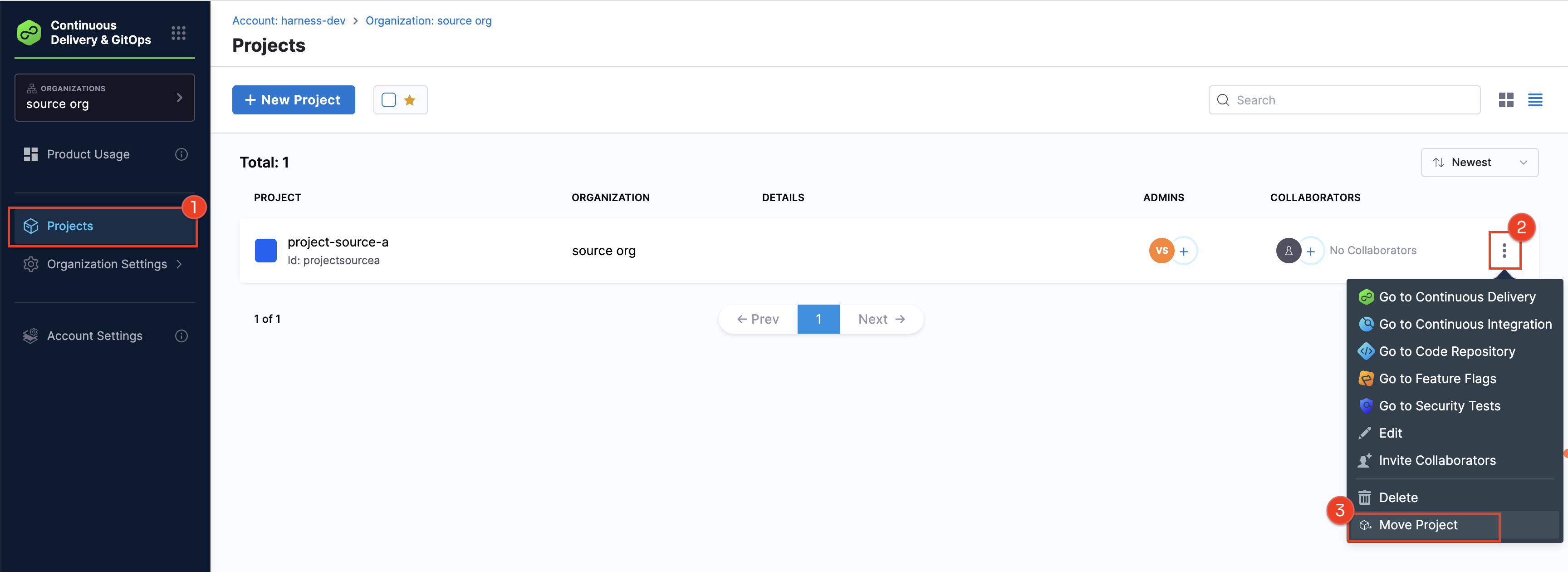 This feature requires the PL_PROJECT_MOVEMENT_ENABLED feature flag. Contact Harness support to enable it.