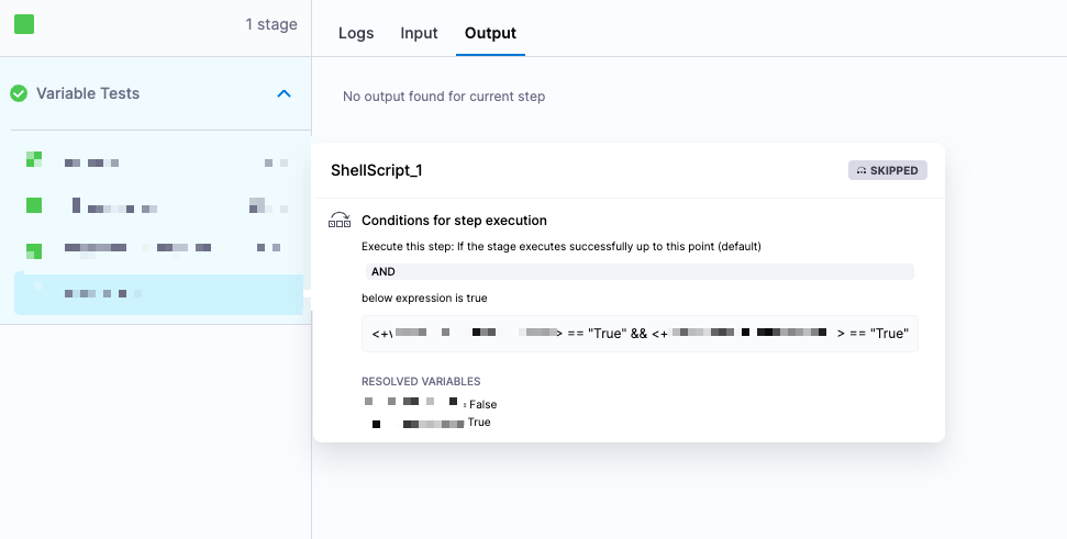 In conditional execution settings, your JEXL conditions can include Harness expressions and variables, including the output of previous steps.