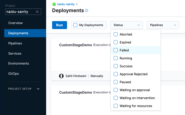 For more information, refer to Deploy Stage and Step Conditional Execution Settings.