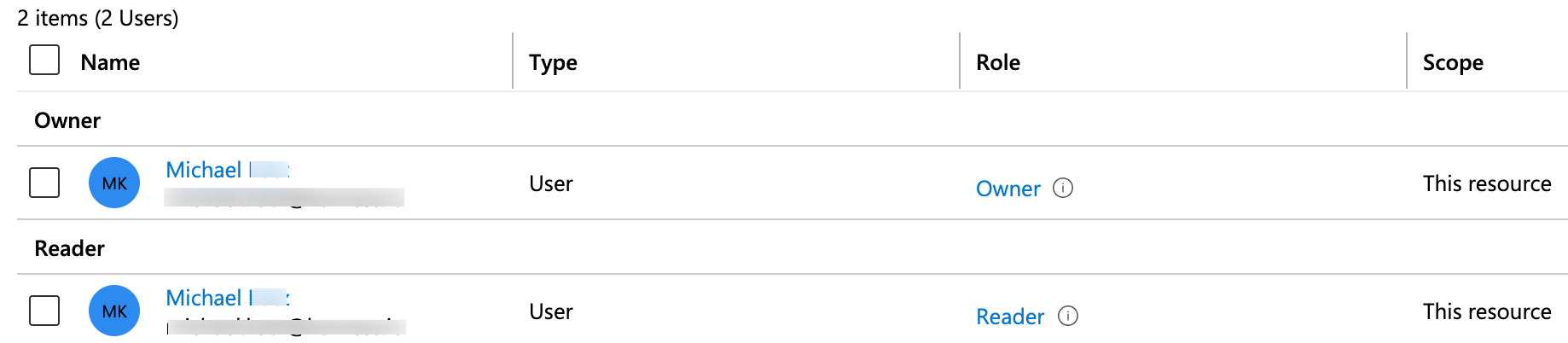 On the Access control (IAM) page, select the Role assignments tab. Make sure your new role now appears under the Reader group.