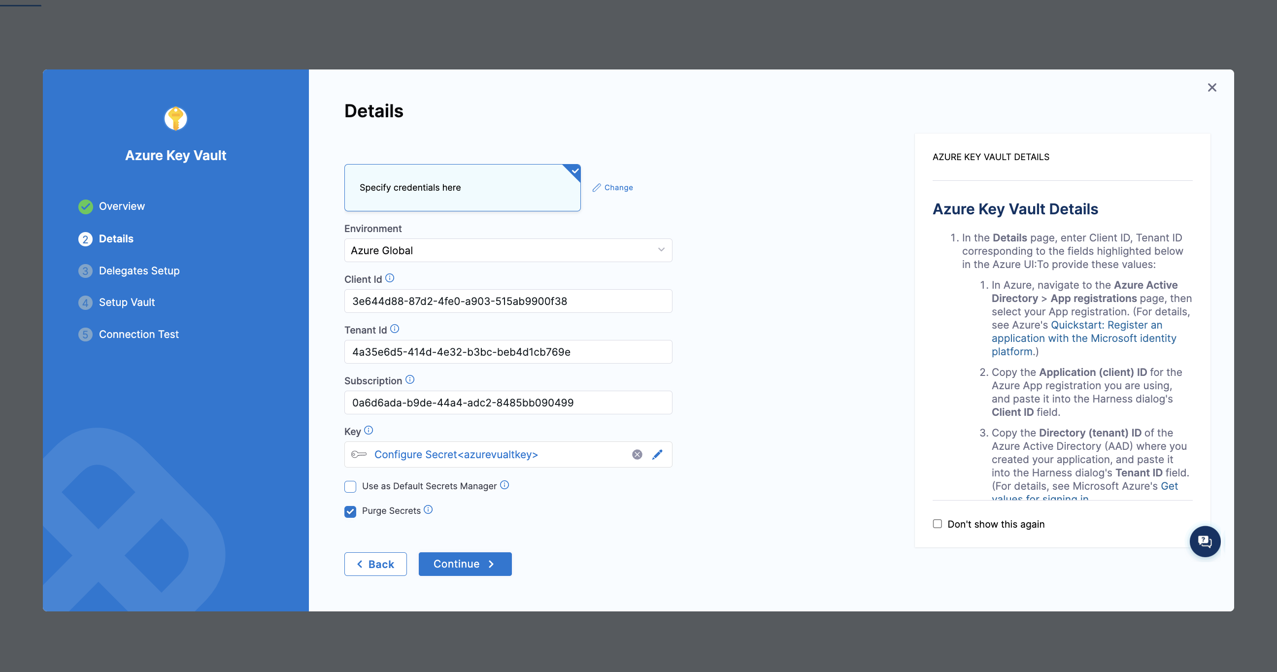To configure the details for your Azure Key Vault connector, you can do one of the following: