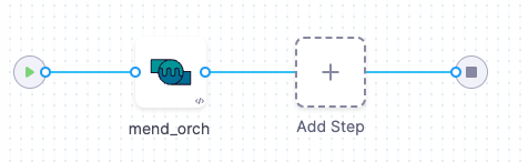 The following pipeline shows an end-to-end orchestration workflow. The Mend step includes the settings needed to run this specific scan: access_token, domain, access_id, and product_name.