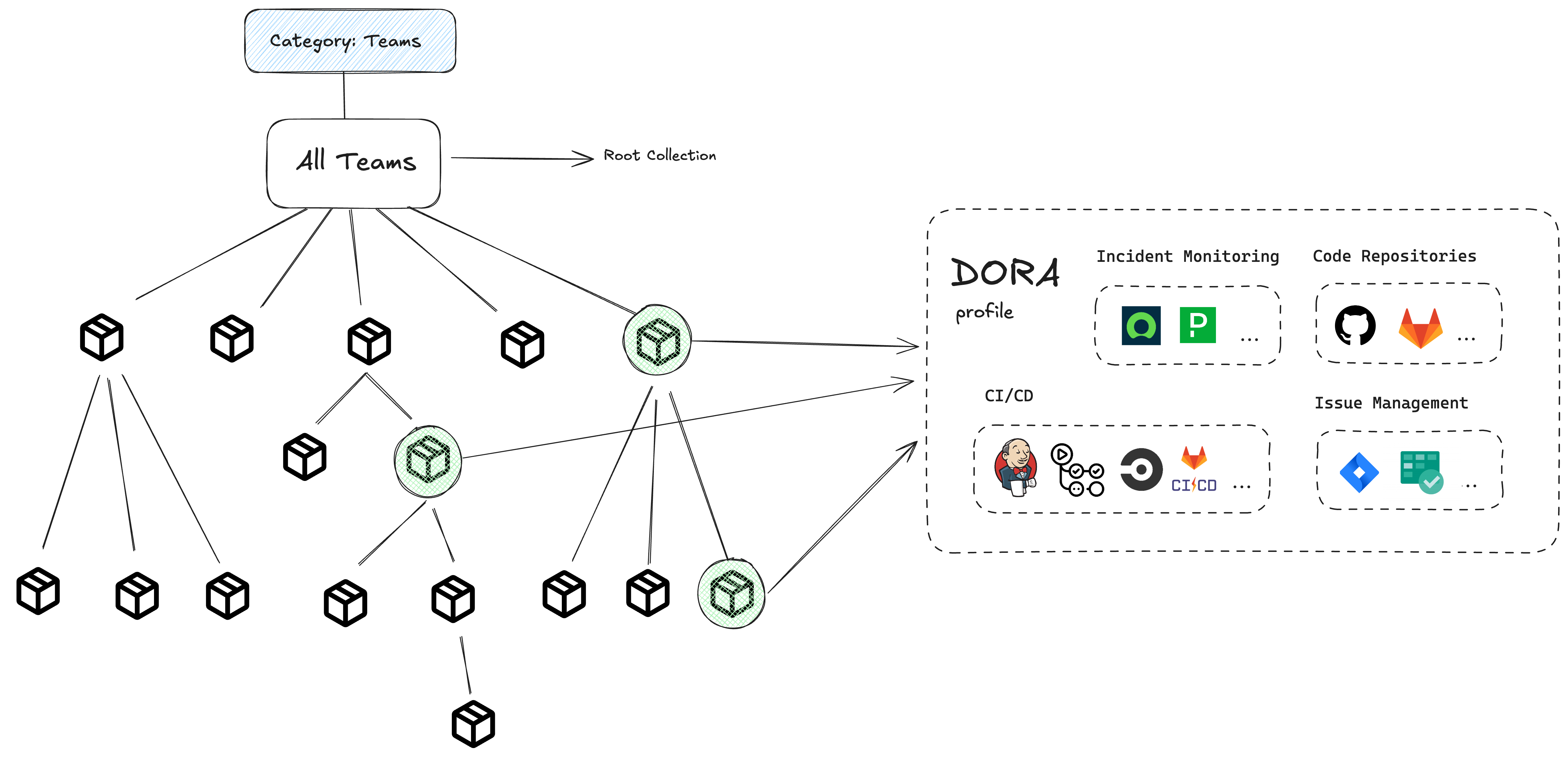 • It serves as a single source of truth for these metrics and ensures consistent measurement across tools like SCMs, CI/CD platforms, and issue management systems.